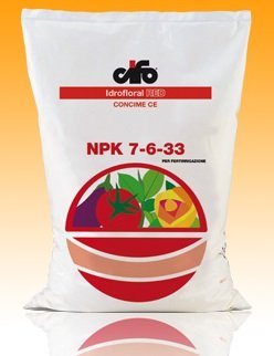 Idrofloral RED 7-6-33, sera ve açık arazi gübreleme ihtiyaçlarına cevap veren, son derece saf ve çözünür bileşenleri ile formüle edilmiş toz bir gübredir. İçeriğindeki NPK oranı ve yüksek potasyum içeriği tüm ürünlerin vejetatif döngünün son dönemlerinde kullanılması için uygun olur ve potasyum ihtiyacını karşılar. Sülfürün varlığı ve formülasyonun fizyolojik asit reaksiyonu, besin elementlerinin kökler tarafından maksimum özümlenmesini sağlamakla beraber amino asit ve aroma bileşenlerinin oluşumunu teşvik eder.